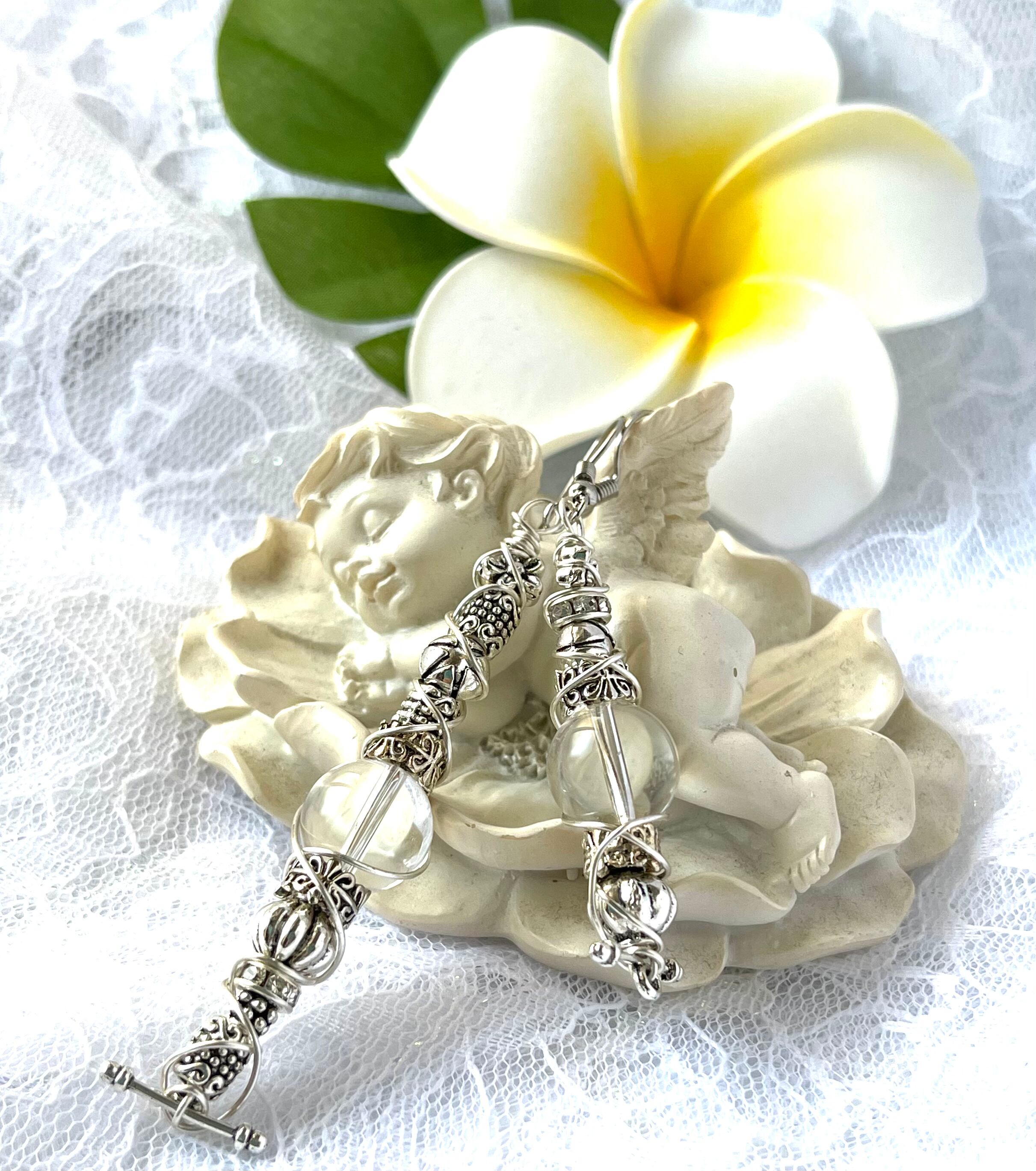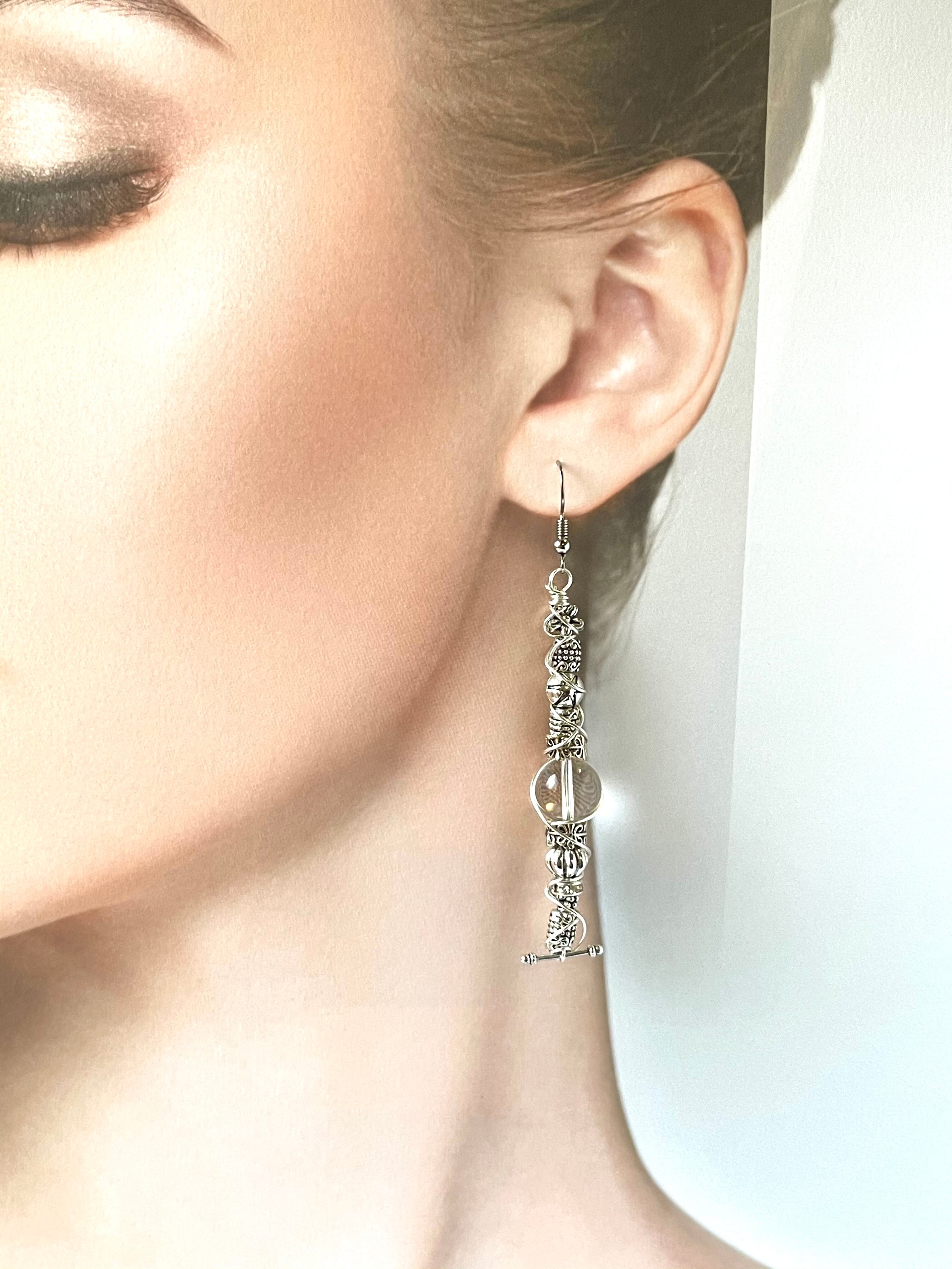 左右で長さが違いますがクリスタルとシルバーパーツなので控えめな存在感がおしゃれ度を増しています。